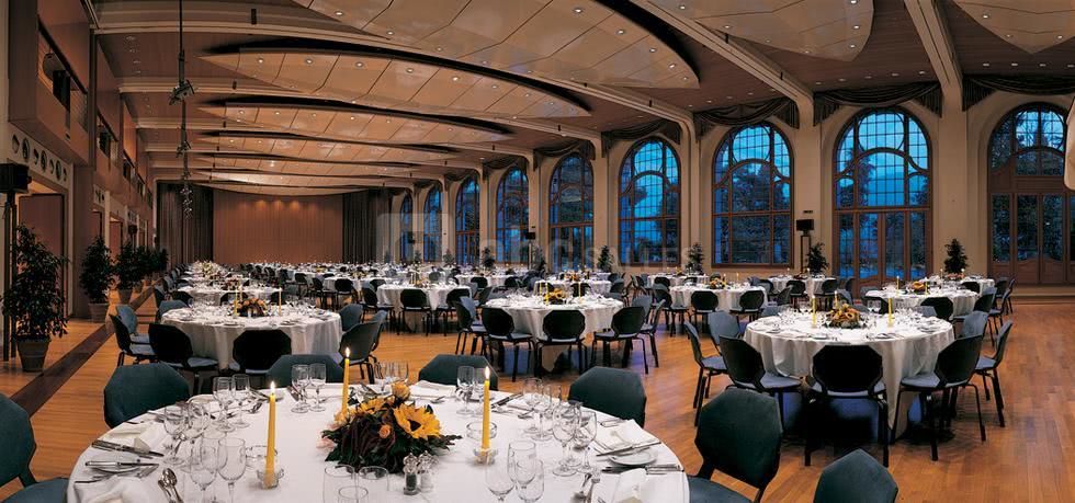 Une vue imprenable depuis la terrasse où se tiendra l'apéritif, une salle somptueuse pour un repas de gala raffiné ponctué d'animations sans barrières linguistiques et un hall d'inspiration Renaissance pour une fin de soirée sublime !